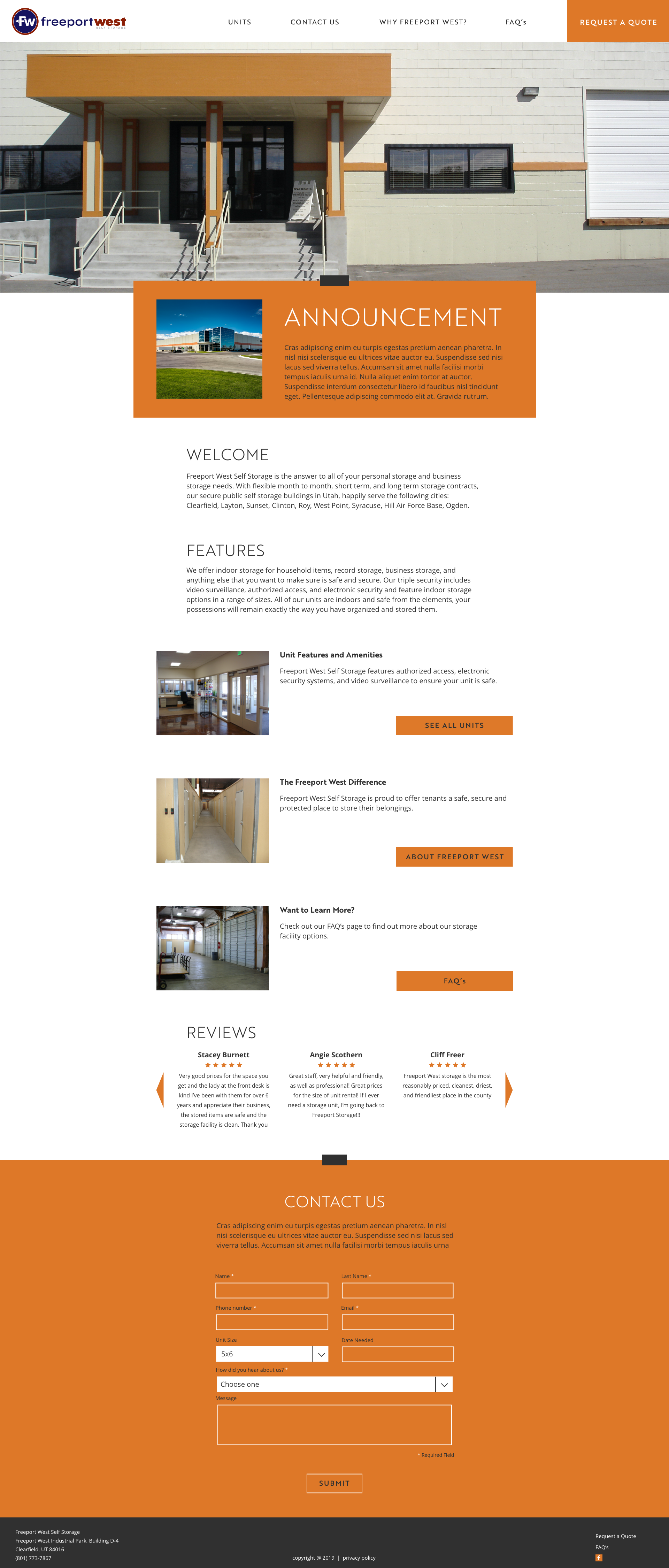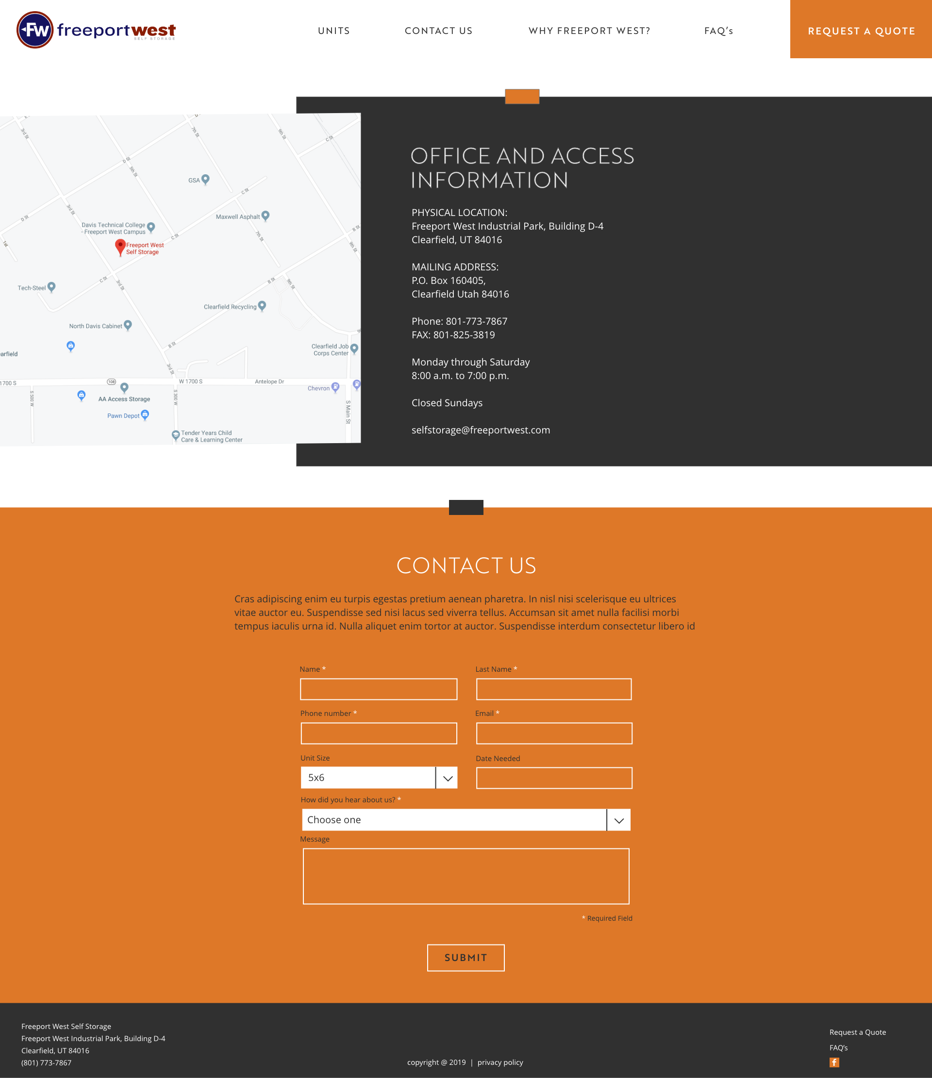Freeport West Self Storage was looking for an updated website but something that was modern and clean. They wanted something that they could easily switch out content and help drive the visitors to contact them about a storage unit.